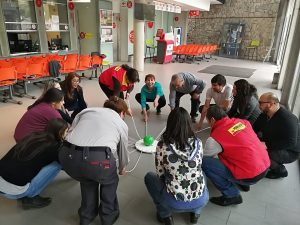 Para permitir la interacción y seguimiento los monitores se van trasladando de un grupo a otro de manera ordenada abarcando finalmente al total de colaboradores, permitiendo así apoyar la logística como también la optimización de los espacios.